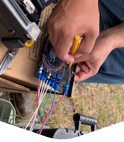 Precision Fiber & Construction provides expert fiber optic splicing services including fusion and ribbon splicing with precise alignment and low-loss performance. Our technicians ensure accurate connections, network reliability, and fully tested results for long-term stability.